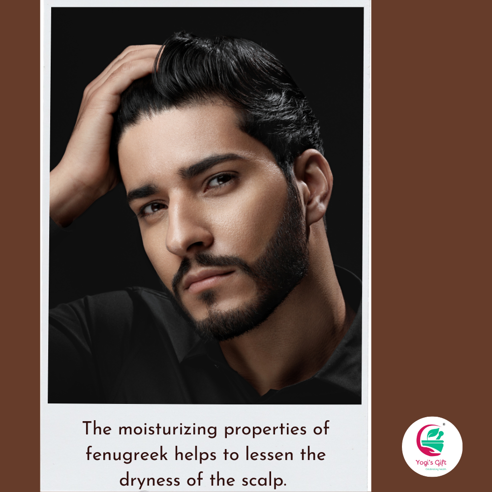 - ★ 𝐇𝐞𝐥𝐩𝐬 𝐡𝐚𝐢𝐫 𝐡𝐞𝐚𝐥𝐭𝐡: The moisturizing properties of fenugreek helps to lessen the dryness of the scalp. Fenugreek seeds have minerals and vitamins that help sooth the scalp. Dandruff is caused by a dry, flaky scalp and hence usage of fenugreek powder on regular intervals will help moisturize the scalp