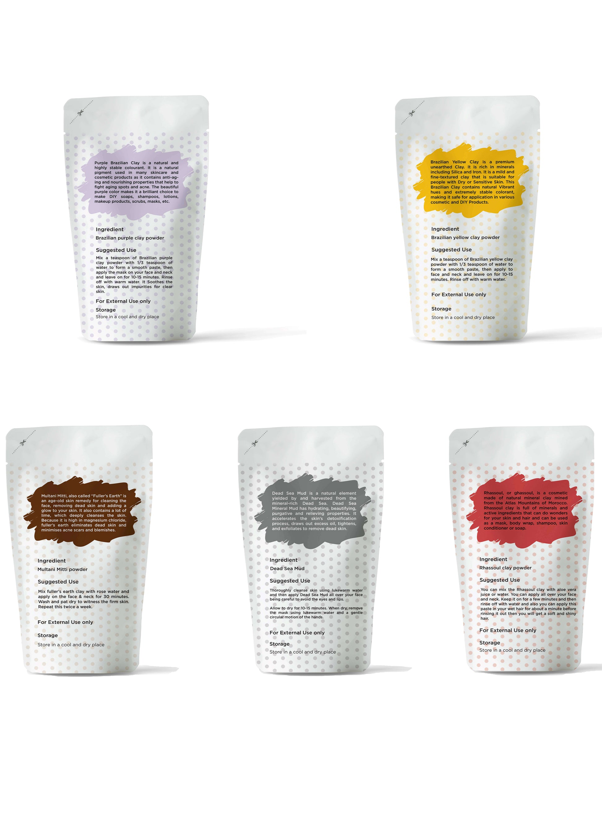 - ★ 𝟓 𝐜𝐥𝐚𝐲𝐬 𝐢𝐧 𝐨𝐧𝐞 𝐩𝐚𝐜𝐤 : We offer 5 different clays that vary in color and properties. You receive 8oz on each clay that is sufficient for your DIY skin care projects. The wide variety of colors help especially in creating wonderful soaps that love your skin. You get purple, yellow, dead sea mud, multani mitti and rhassoul clays.
