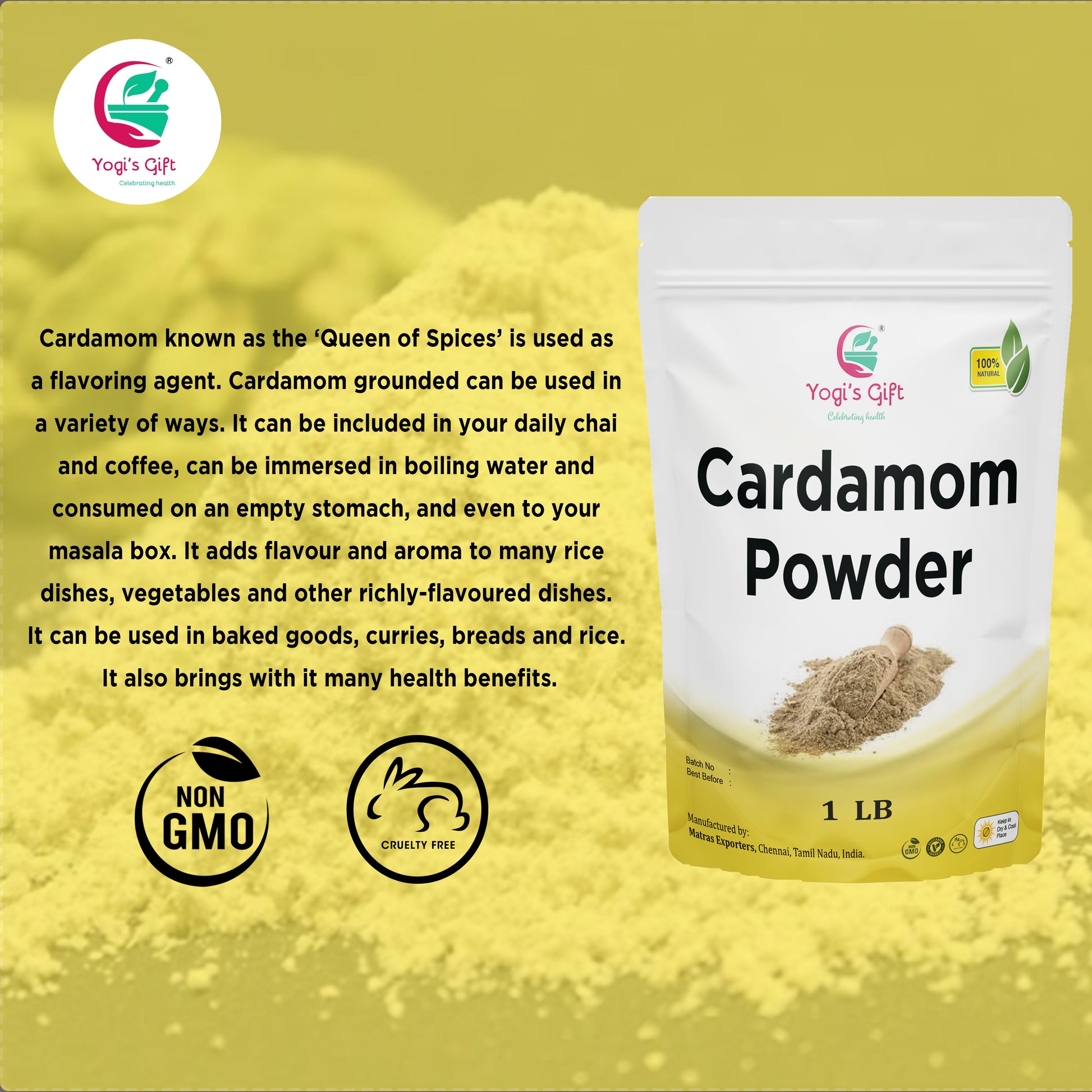 Ground Cardamom Powder 1 LB | Adds Great Flavour To Baked Goods, Coffee, Tea and Curries | Fresh And Aromatic | aka Elaichi, Cardamon | Yogi's Giftยฎ