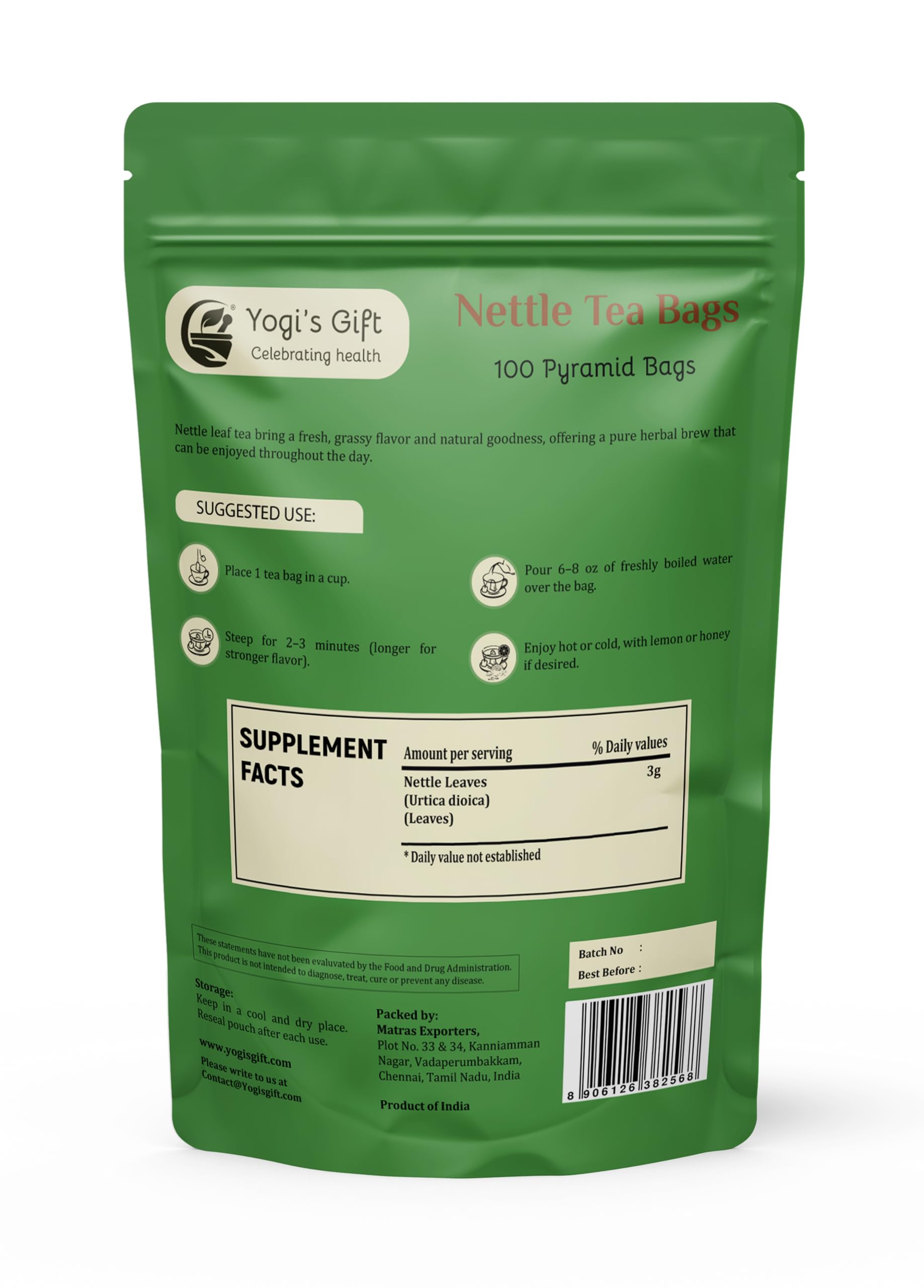 Nettle Tea Bags (100 Count) – Pyramid Tea Bags – 100% Natural & Pure Nettle Tea Leaves – Delightful Herbal Tea Experience – by Yogi’s Gift®