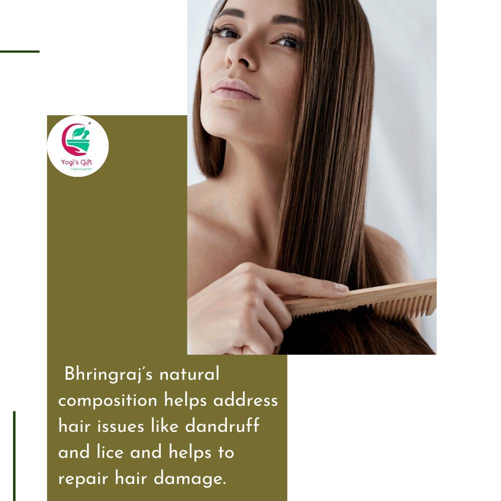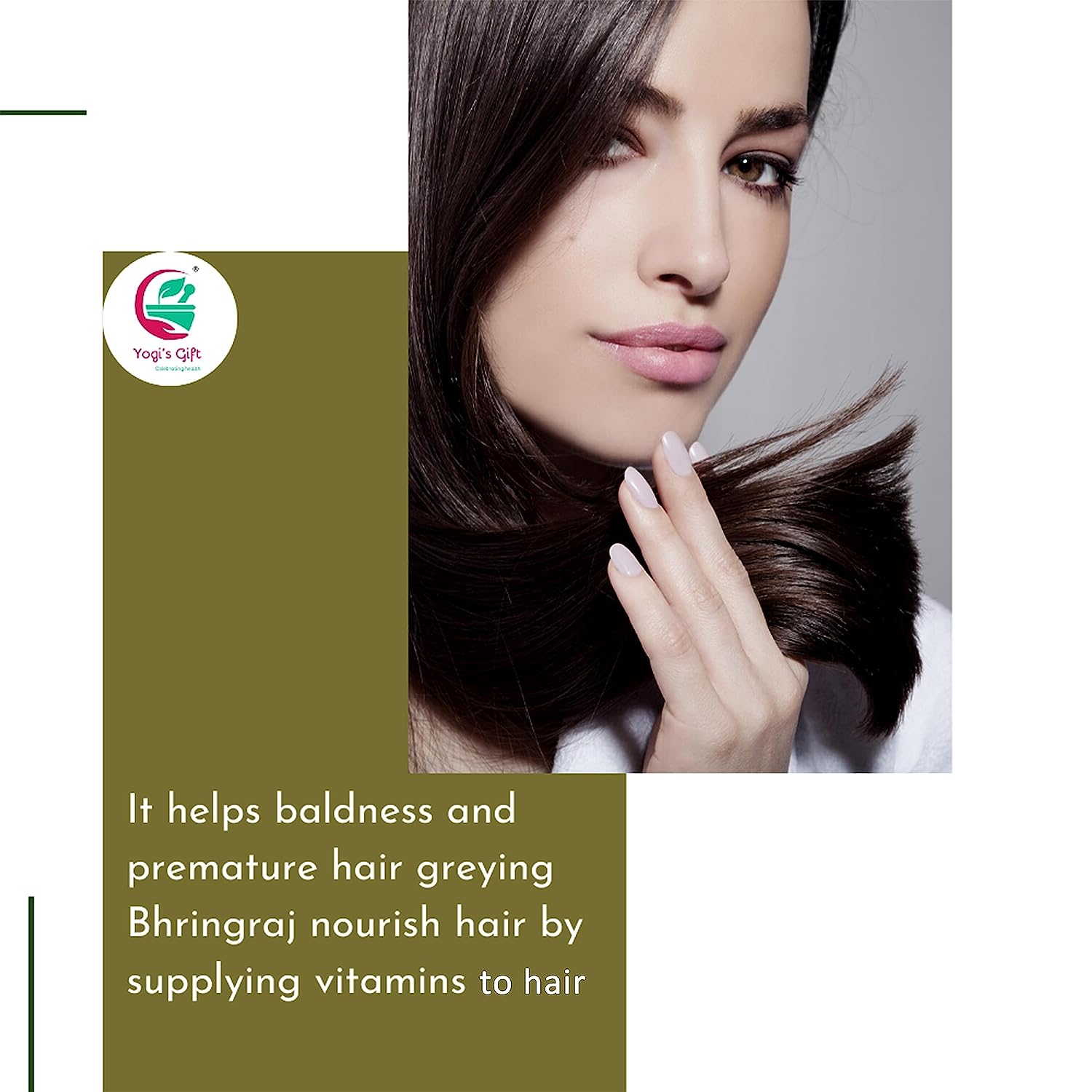 โ ๐๐๐ซ๐ ๐๐จ๐ซ ๐๐๐ข๐ซ : Bhringraj Powder is well-known for its hair and scalp benefits. This herb nourishes the hair while also preventing hair loss. Bhringraj powder is a natural hair tonic that helps in hair care. It strengthens hair follicles, reduces hair fall, and prevents premature greying of hair.