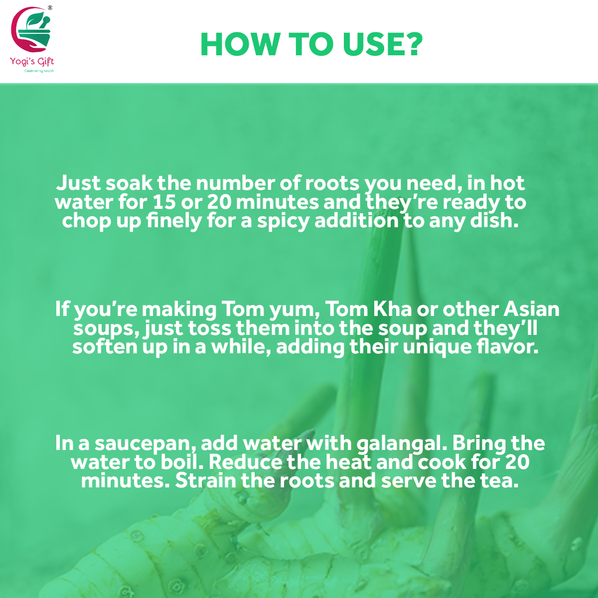 - โ ๐๐จ๐ฐ ๐ญ๐จ ๐ฎ๐ฌ๐ : Just soak the number of roots you need in hot water for 15 or 20 minutes and theyโre ready to chop up finely for a spicy addition to any dish. If youโre making Tom yum, Tom Kha or other Asian soups, you donโt even have to pre-soak the roots ; just toss them into the soup and theyโll soften up in a while, adding their unique flavor. Take the roots out before serving because theyโre tough, fibrous and not pleasant to eat whole.